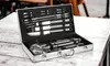 • Valigetta rigida in acciaio con 18 accessori barbecue ideale per avere tutto il necessario per organizzarte il barbecue
