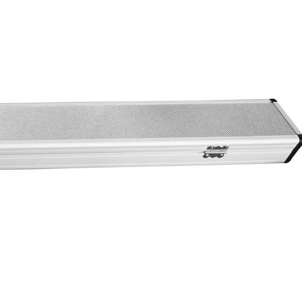 Custodia in alluminio robusta con interno in schiuma, per proteggere la stecca da urti. Chiusura sicura con 3 ganci.