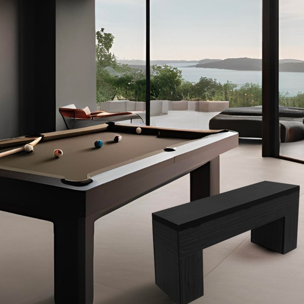 Panca 2 posti dal design moderno, con scelta di colore per abbinarsi perfettamente al biliardo convertibile. Compatta, stabile e pratica, si integra armoniosamente in ogni ambiente.