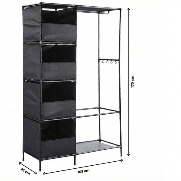 - Disegnato per essere funzionale e adattabile, con spazio per appendere vestiti e ripiani per altri oggetti.