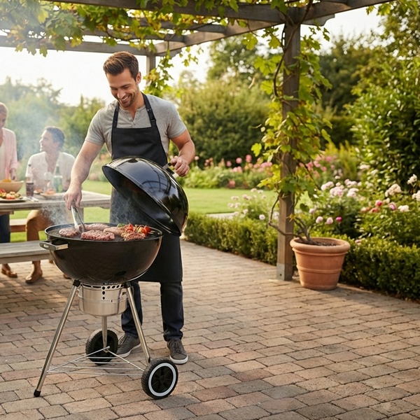 Porta il gusto delle grigliate autentiche nel tuo giardino con il barbecue a carbone rotondo da 57 cm, l’alleato perfetto per cucinare all’aperto con stile, praticità e sapore.