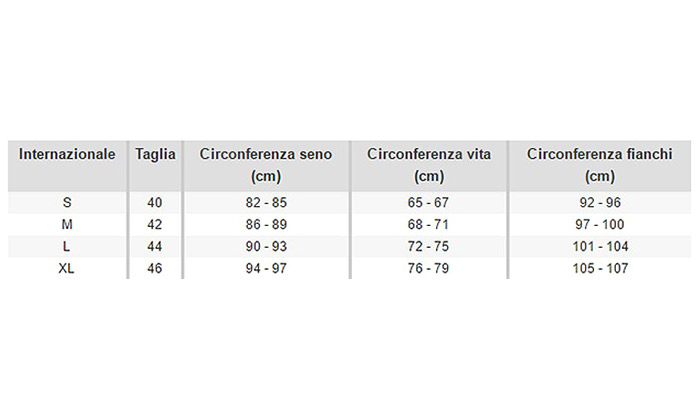 - Taglie: da 40 a 46