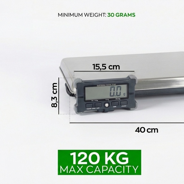 Massima durata e precisione: la bilancia industriale Boudech offre una capacità di carico di 120 kg e un display LCD retroilluminato!