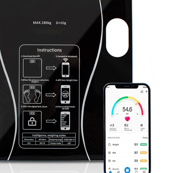 Controlla il tuo stato di salute con la bilancia intelligente: pesa, misura grasso e muscoli e sincronizza facilmente con il tuo smartphone.