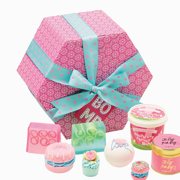 - Cofanetto regalo composto da: burro/gel doccia al lampone | bomba da bagno Pink Rhubarb Princess Whoopie | gelatina da bagno Vintage-Styled Vibe | bomba da bagno All You Need is Love | sapone Pink Pamper | candela Jelly Baby | sapone al cotone fresco | burro Ripple-licious Loop