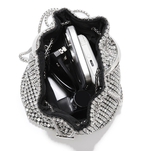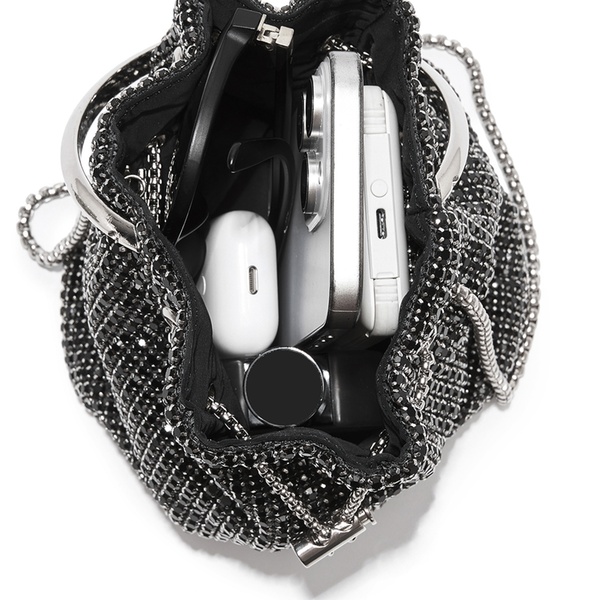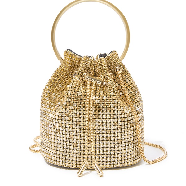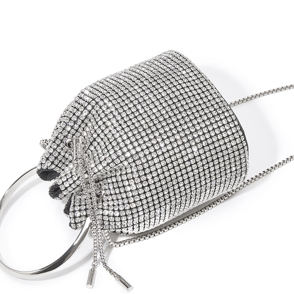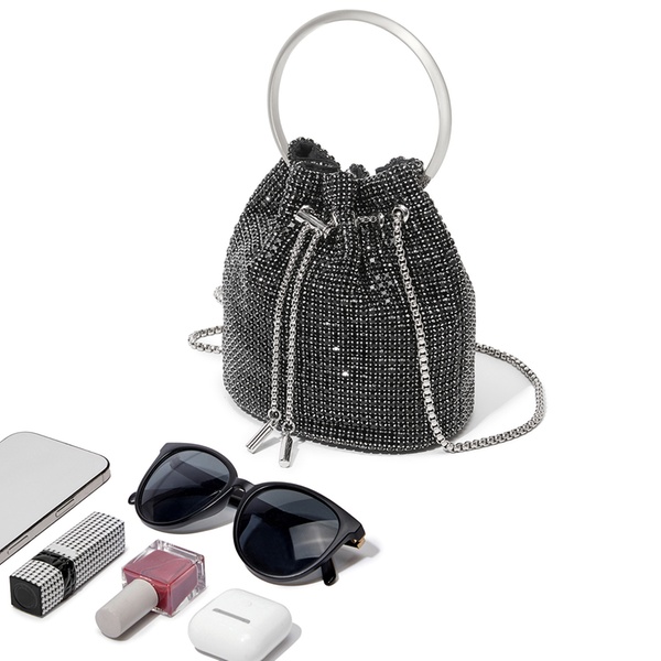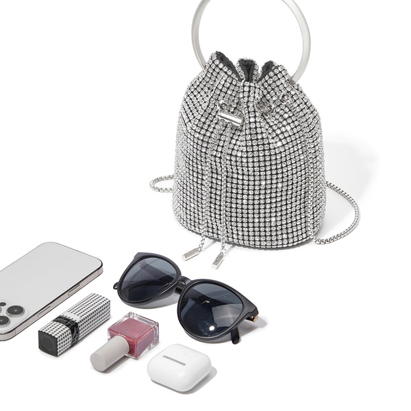 Con un elegante manico metallico rotondo e una chiusura a catena, questa borsa è perfetta per un tocco di stile in ogni occasione.