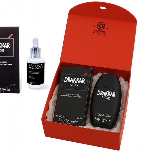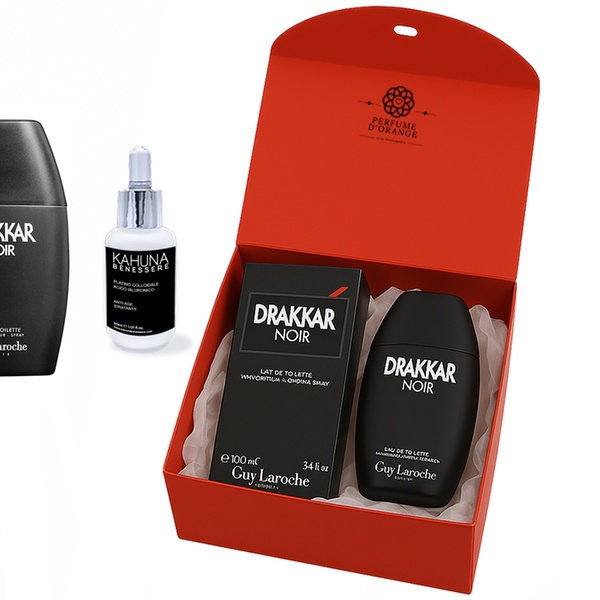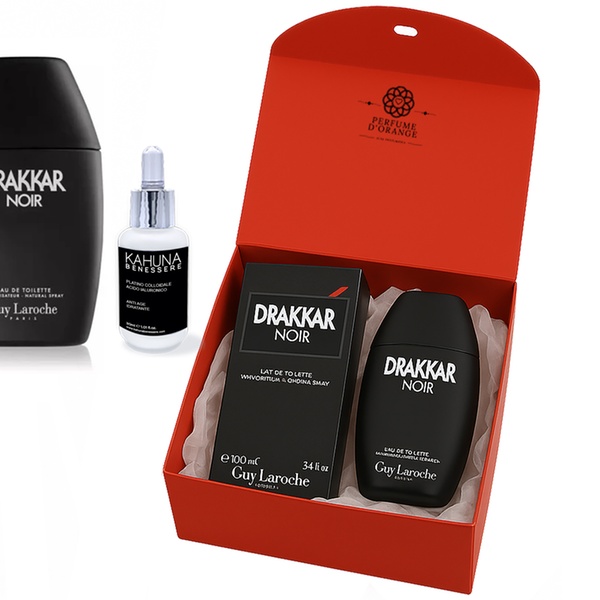 - Include una fragranza Drakkar Noir EDT (disponibile in 50ml, 100ml o 200ml)