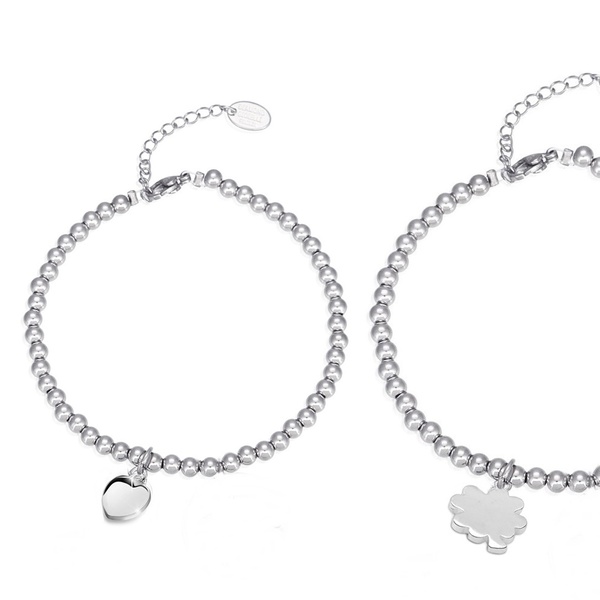 Questo bracciale in acciaio anallergico offre un design elegante, arricchito da charm personalizzabili in diverse forme e finiture!
