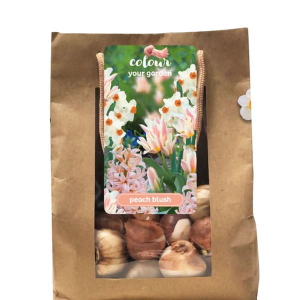 - Confezione con 25 bulbi in 3 varietà di fiori bianchi e pesca, perfettamente abbinati
