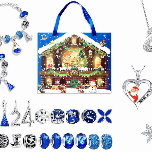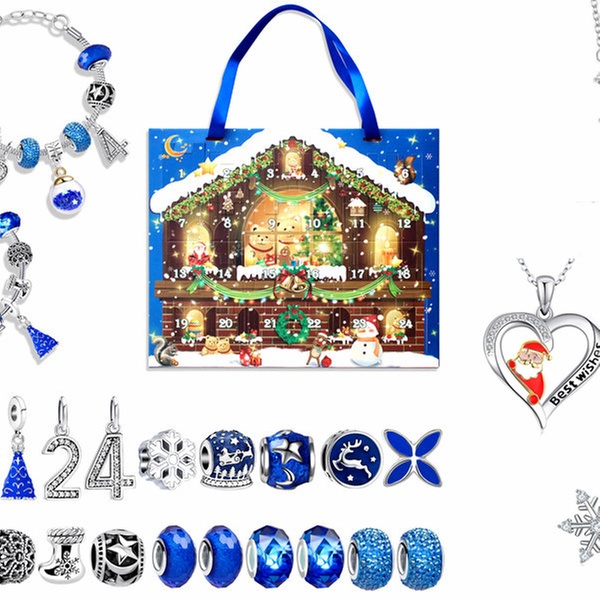 Calendario dell'avvento con bracciali e collane con cristalli, disponibile in 2 tipologie