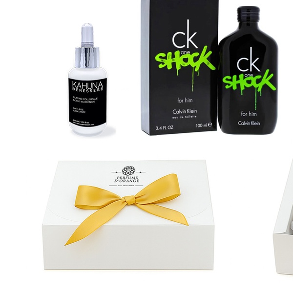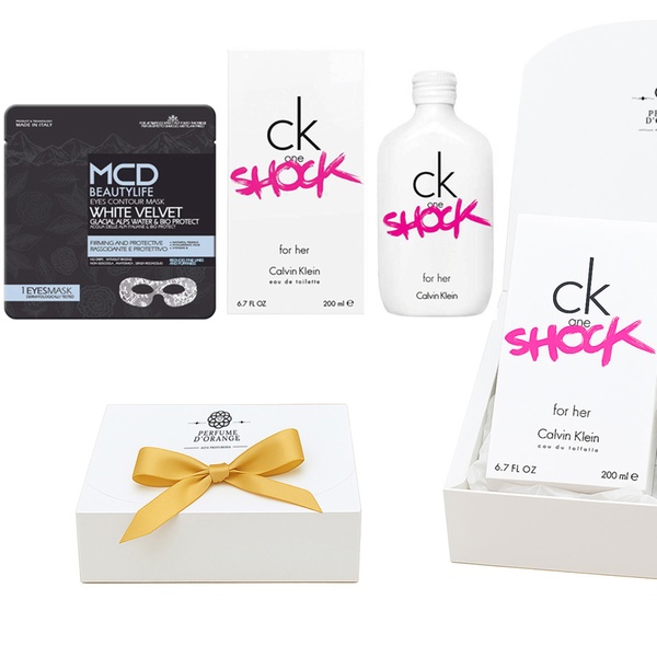 - L'iconica fragranza di Calvin Klein One Shock EDP con un siero al platino colloidale o una maschera hydrogel viso MCD Beautylife delle sorelle Buccino.