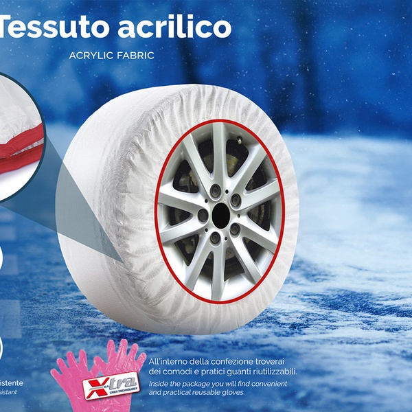 - Queste calze da neve omologate sono riutilizzabili e includono un paio di guanti, utili per l'installazione in condizioni fredde o di neve.