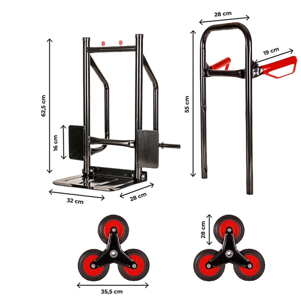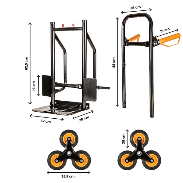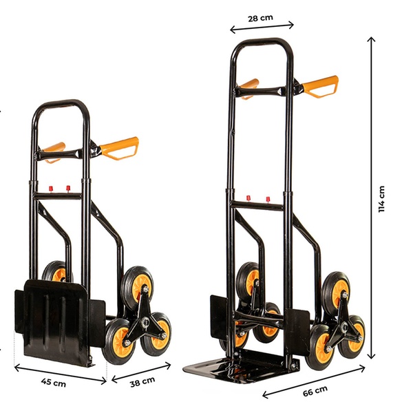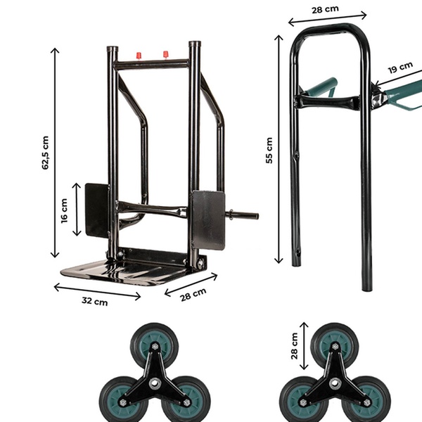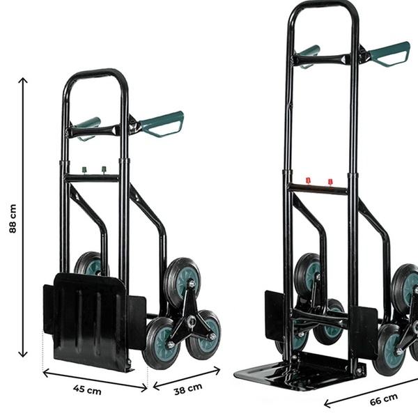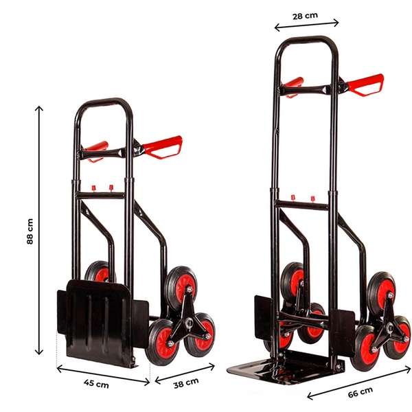 • Dettagli perfetti: si ripiega facilmente in pochi secondi; manico telescopico regolabile; superficie di carico extra grande per maggiore sicurezza; ruote morbide che non lasciano segni e sei ruote totali per salire le scale