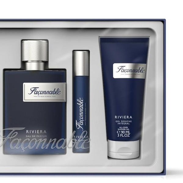 Oggi Groupon offre un Cofanetto regalo Façonnable "Riviera" con fragranza e gel doccia, distribuito da Sykz.