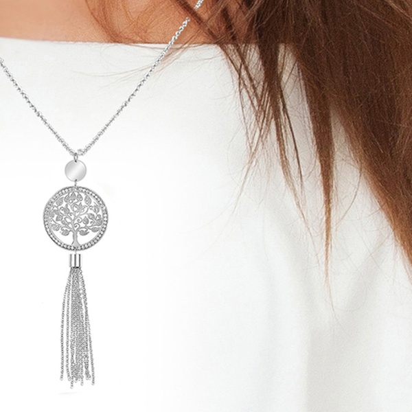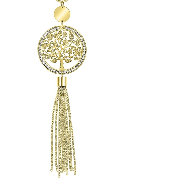 Questa collana lunga in acciaio inox, con cristalli scintillanti, aggiunge un tocco di eleganza a ogni look.