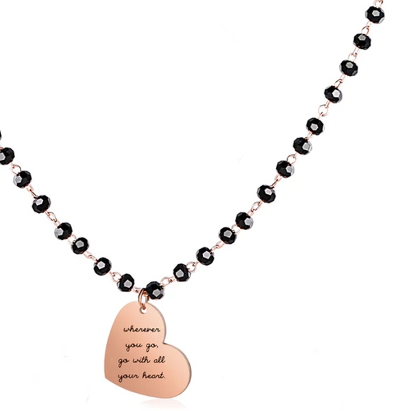 Questa collana rosario in acciaio con charm inciso aggiunge un tocco di eleganza a ogni outfit, perfetta per ogni occasione speciale.