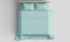 Caratterizzato da un fresco colore acqua, questo completo lenzuola trasforma ogni stanza in un rifugio invitante e sereno.