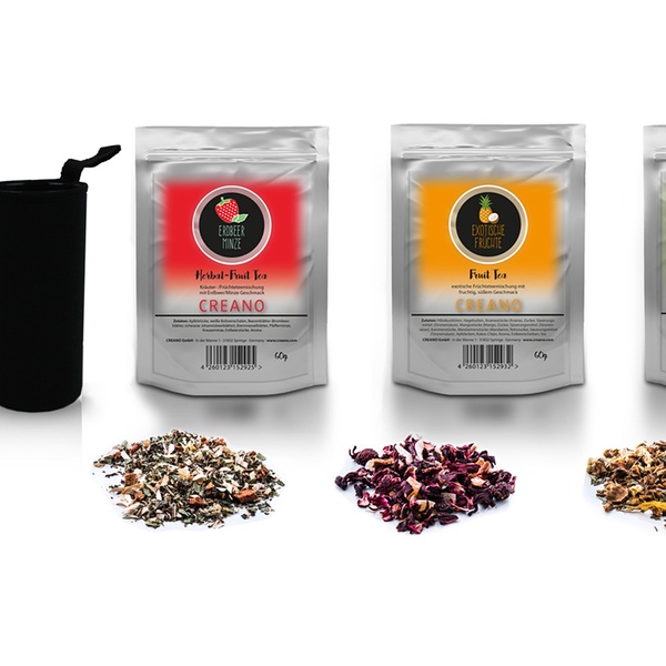 - Infusori per il tè disponibili: Jumbo Glass-Teacup 450 ml con filtro in acciaio inox e coperchio, Filtercup “all-in-one” 400 ml, Teapot 1000 ml con filtro in acciaio inox, Teapot 1200 ml con filtro in acciaio inox, Teamaker 400 ml con manico in silicone e scocca in neoprene