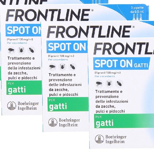 Oggi Groupon offre fino a 12 pipette insetticide e acaricide Frontline Spot Ongatti, distribuite da Spesasicura