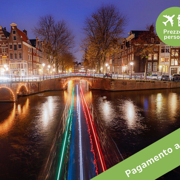 - Volo diretto andata e ritorno dagli aeroporti elencati con destinazione Amsterdam con piccolo bagaglio a mano (max 40 x 20 x 25 cm)