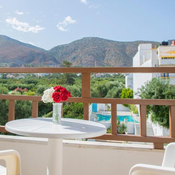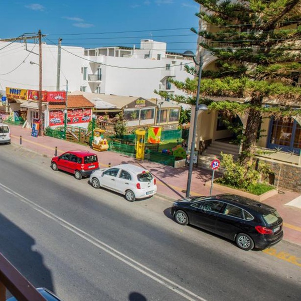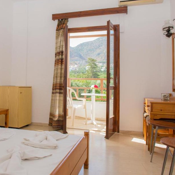 Le camere dell'hotel sono progettate per offrire un rifugio luminoso e rilassante, riflettendo lo stile tipico dell'ospitalità mediterranea con un tocco di semplicità funzionale. Ogni sistemazione è dotata di un balcone privato, molti dei quali offrono una vista parziale sul mare o sul paesaggio urbano circostante, permettendo di godersi la brezza marina in totale privacy. All'interno, gli spazi sono arredati in modo essenziale ma confortevole, includendo dotazioni pratiche come aria condizionata, frigorifero per le bevande fresche e bagni privati, garantendo tutto il necessario per un soggiorno rigenerante dopo una giornata sotto il sole cretese.
