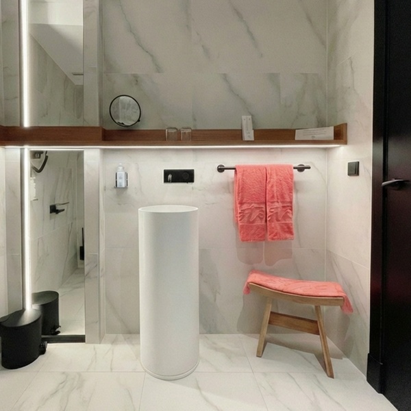 Le camere si distinguono per un design d'avanguardia, caratterizzato da uno stile moderno, minimalista e decisamente urbano. Ogni sistemazione è concepita come un rifugio tecnologico e confortevole, dotata di domotica, aria condizionata, TV a schermo piatto di grandi dimensioni, minibar e connessione Wi-Fi ad alta velocità. L'arredamento gioca su linee pulite e materiali contemporanei, con ampie finestre o balconi che si affacciano sulla vita cittadina di San Antonio, garantendo un'esperienza di soggiorno sofisticata e dinamica, perfetta per un pubblico giovane e cosmopolita.