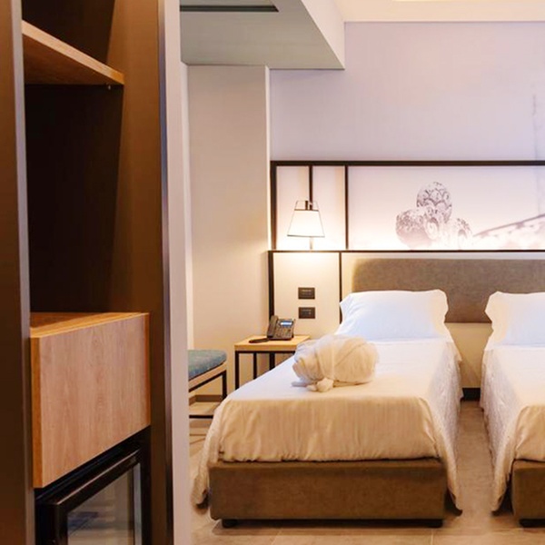 Soggiorno in camera matrimoniale Superior/Doppia con letti singoli per 2 persone.