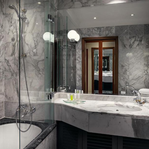 Tutte le camere sono state offerte per servire il massimo comfort, dotate di eleganti bagni in marmo bianco di Carrara.