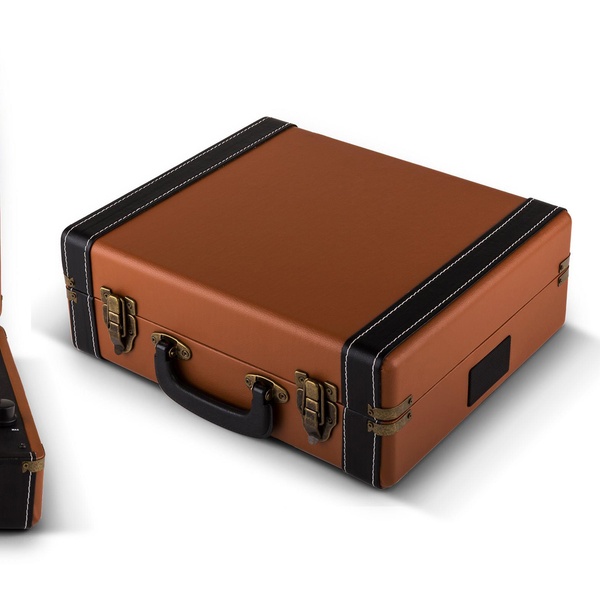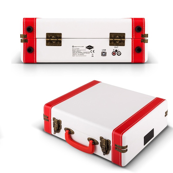 Giradischi dal look retrò in pratica custodia a valigia per la riproduzione e digitalizzazione di dischi con altoparlanti stereo integrati