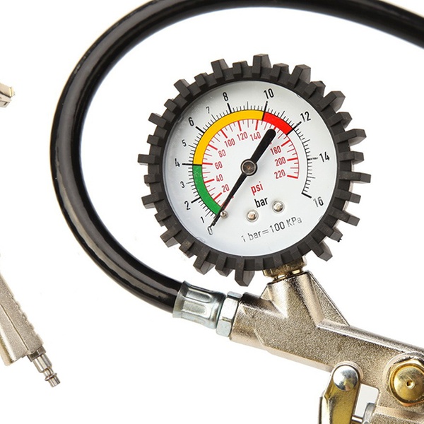 Pistola per gonfiaggio ruote con manometro per auto, bici, moto