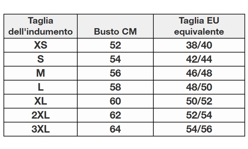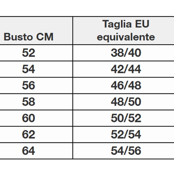 Taglia dell'indumento | Busto (cm) | Taglia EU equivalente |