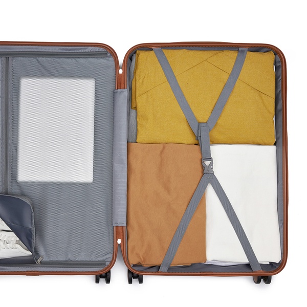 - Ruote spinner doppie di livello aeronautico: quattro ruote multidirezionali doppie garantiscono una rotazione a 360° stabile, silenziosa e scorrevole negli aeroporti.
