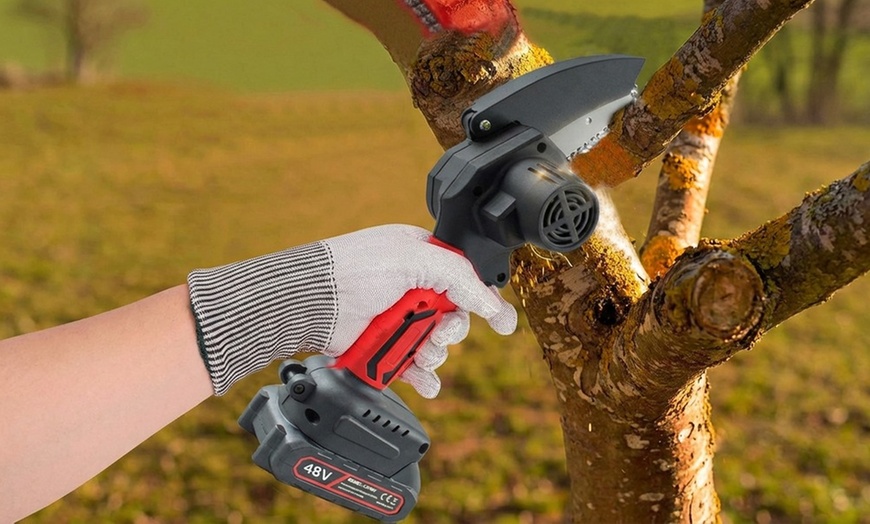 Oggi Groupon offre una mini motosega elettrica cordless, distribuita da Top Trade SRL