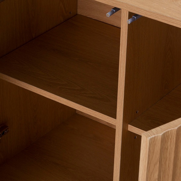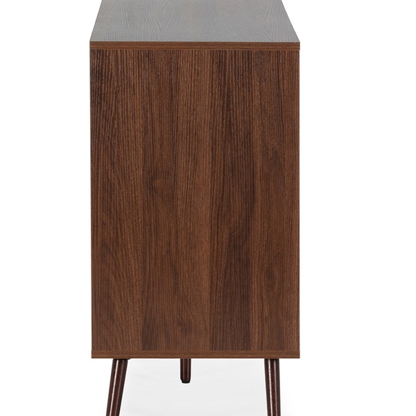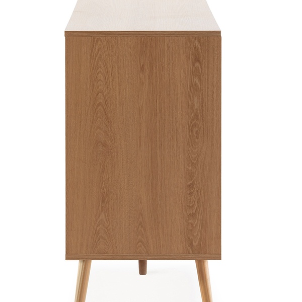 - Realizzato in melamina di alta qualità, è proposto nel colore rovere, ideale per abbinarsi facilmente a mobili effetto legno e tonalità calde.