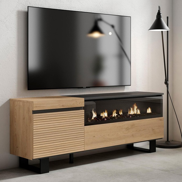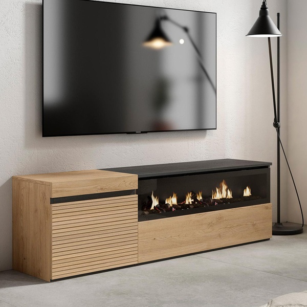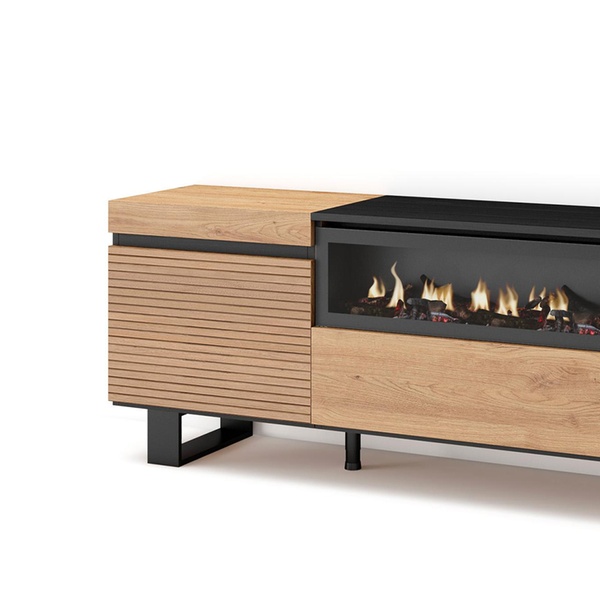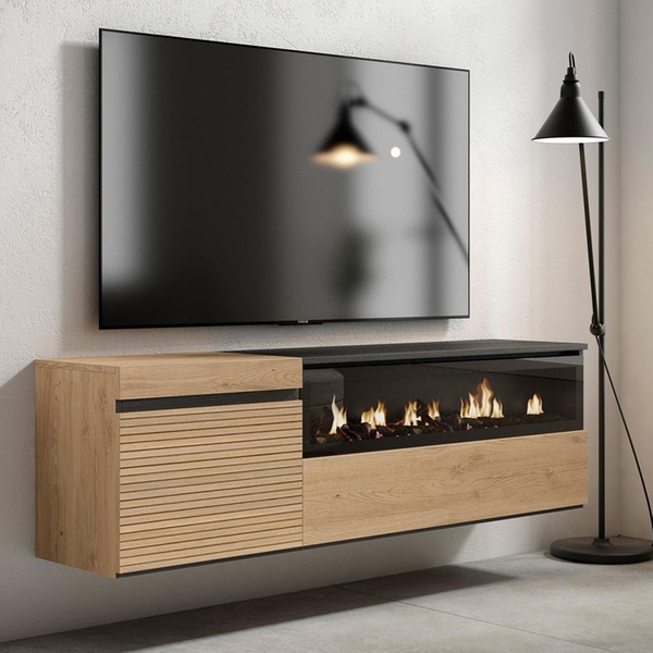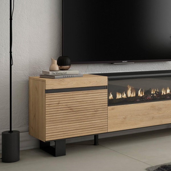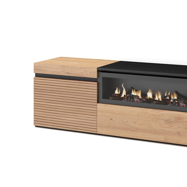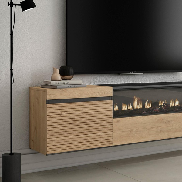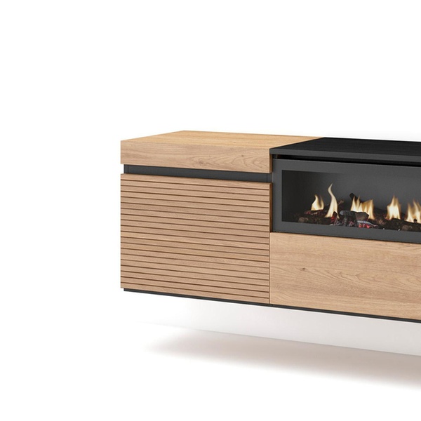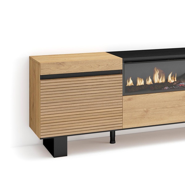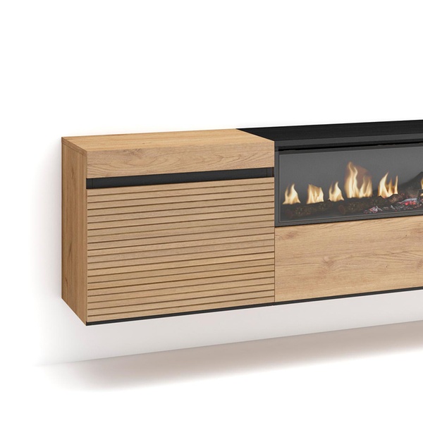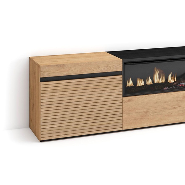 - Modulo con spazio per camino elettrico o per riporre dispositivi elettronici, con anta ribaltabile. Dimensioni: 102 cm larghezza, 45 cm altezza, 35 cm profondità.