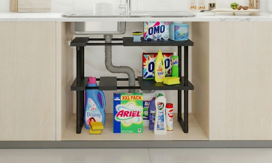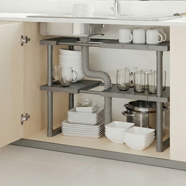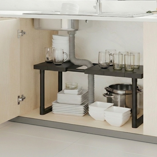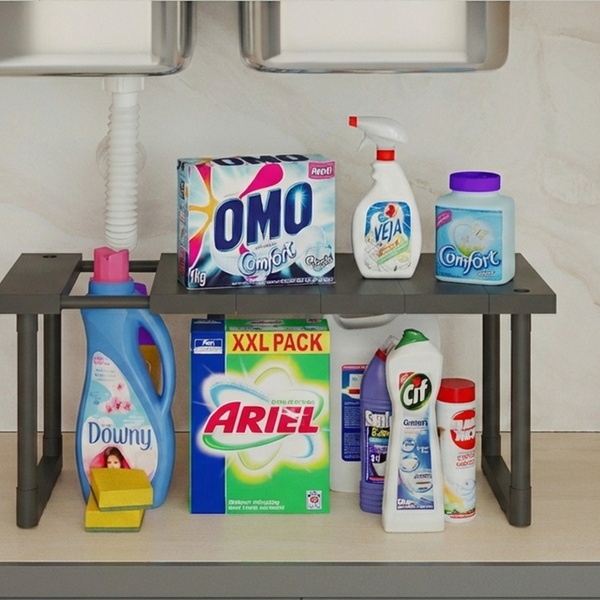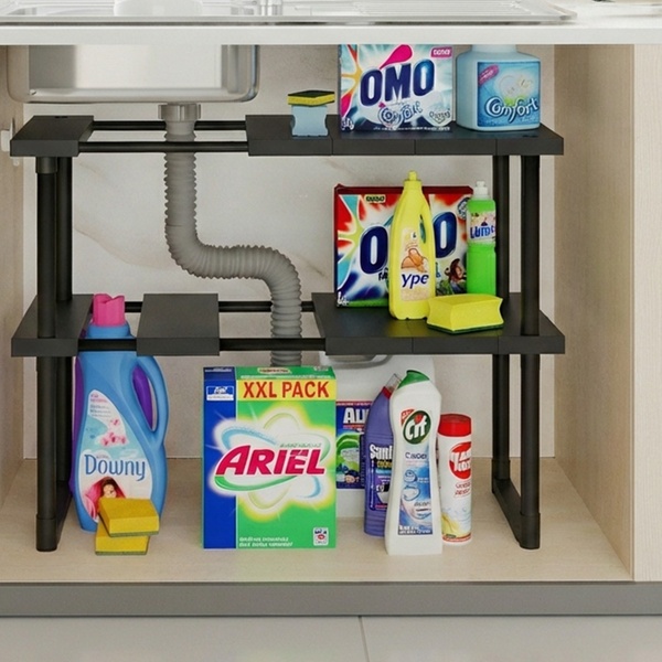Riorganizza il tuo spazio: doppio ripiano per sfruttare ogni angolo sotto il lavello, con stile e praticità!