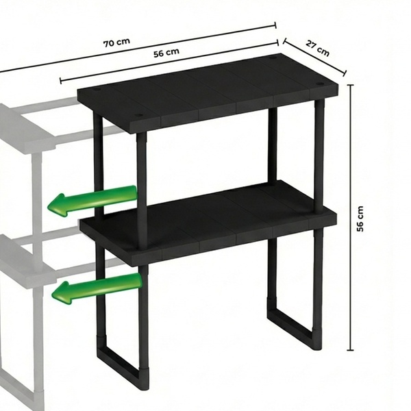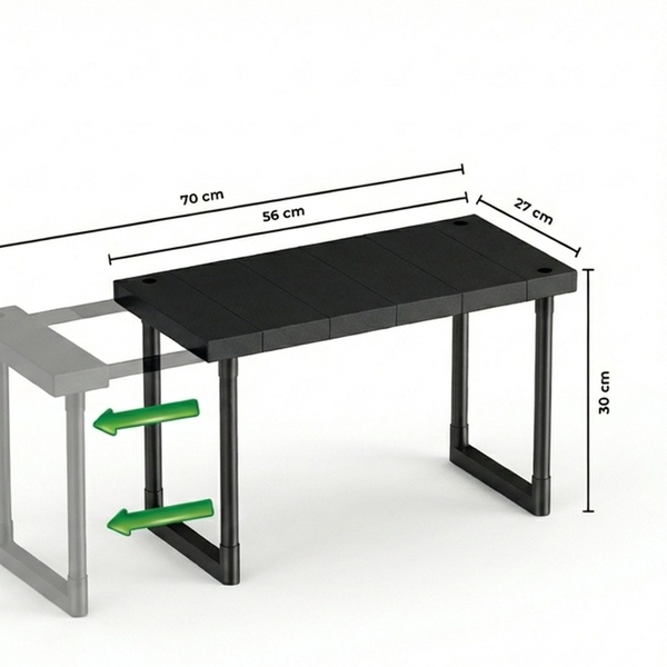 - Struttura estensibile regolabile: larghezza regolabile da 56 a 70 cm, profondità 27 cm, altezza totale 56 cm. Si adatta facilmente a diverse configurazioni interne.