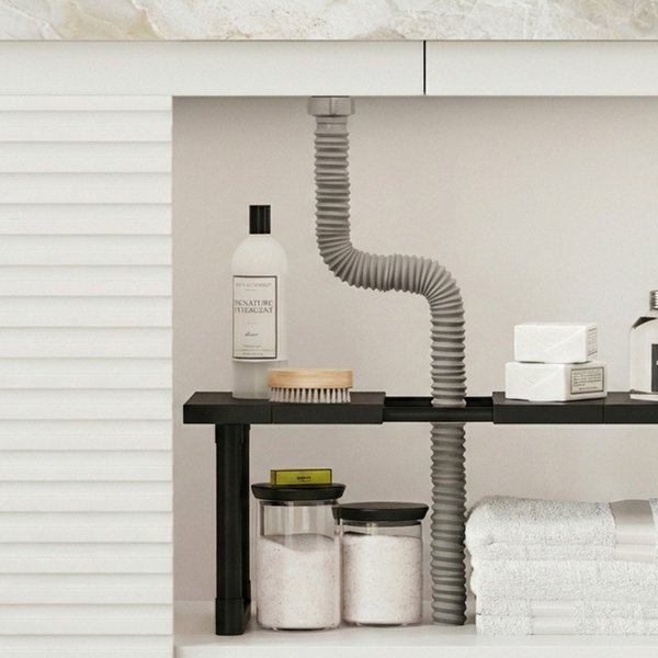 - Ottimizza lo spazio sotto il lavello: soluzione intelligente per sfruttare l’area attorno al sifone e mantenere tutto in ordine: piatti, detersivi, pentole e accessori sempre a portata di mano.
