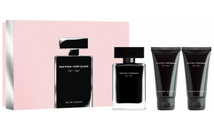 Oggi Groupon offre un coffret Narciso Rodriguez For Her con fragranza, crema e gel doccia, distribuito da Ragatex SL