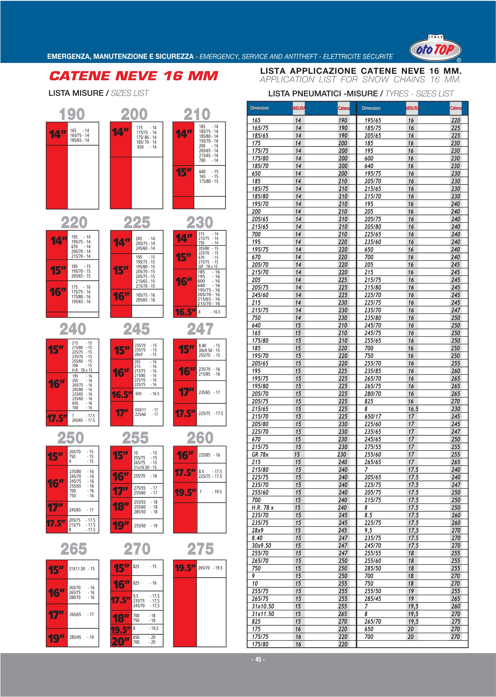 - Nuovi anelli da 9 mm per un ingombro ridotto, ideale pure per auto con abs e pneumatici larghi