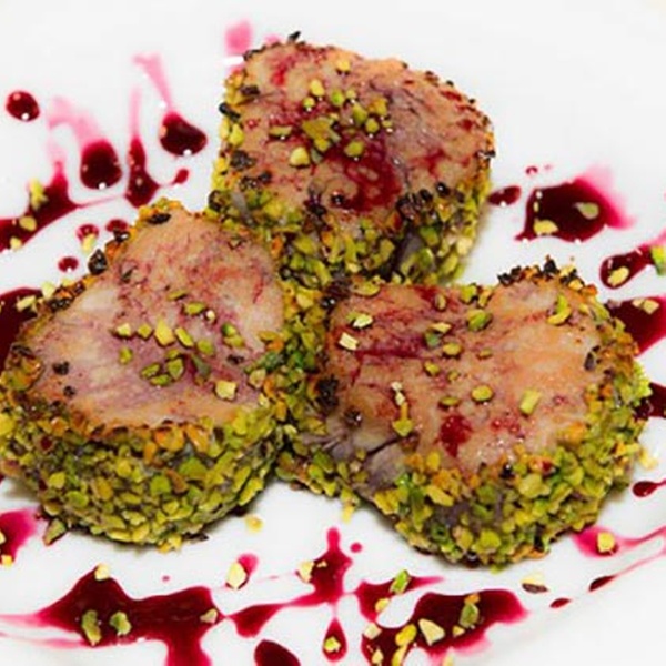 - secondo a scelta tra faraona al forno con patate o filetto di maiale in granella di pistacchio e riduzione di Lambrusco