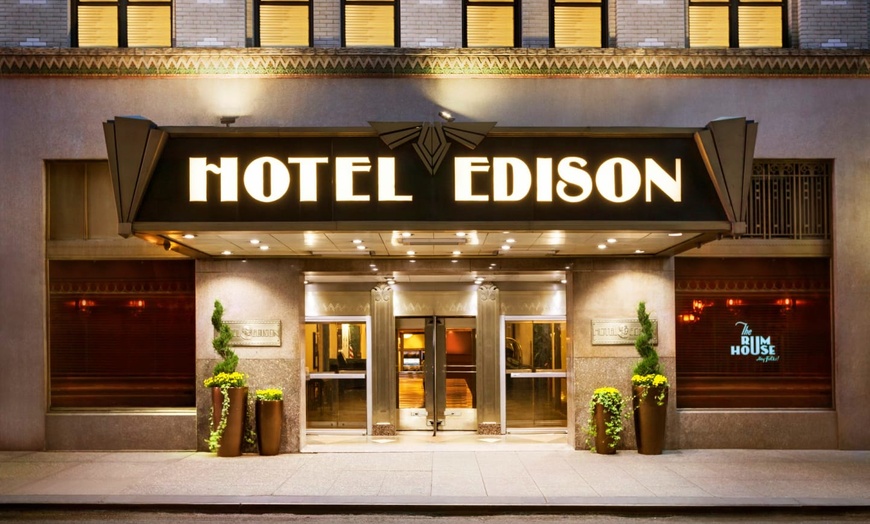 Benvenuto a New York City, una delle città più belle del mondo. Per scoprirla, soggiorna all'hotel Edison Times Square 4*, nel cuore di Times Square. Situato tra l'8th Avenue e Broadway, questo hotel si trova in una struttura storica risalente agli anni '30. La facciata e la decorazione della sala d'ingresso rivelano uno stile ispirato all'Art Déco, come gli edifici dell'epoca. Le camere sono moderne e raffinate, perfette per riposarsi. Con un ristorante e una palestra, questo luogo sarà il tuo nido newyorchese per una vacanza diversa dal solito.