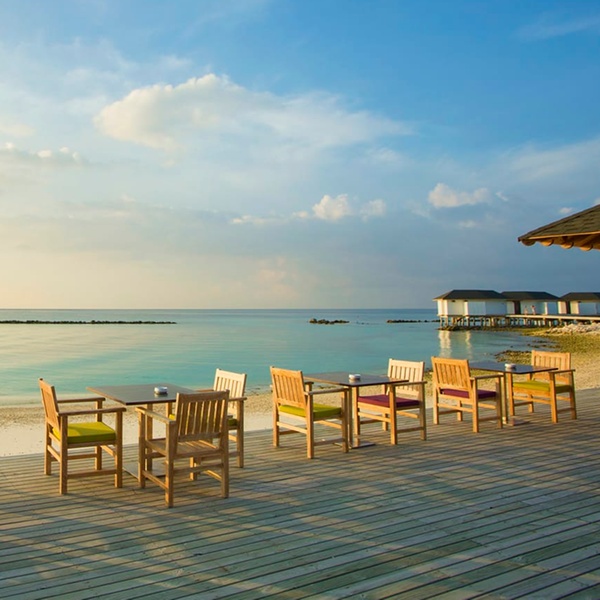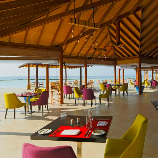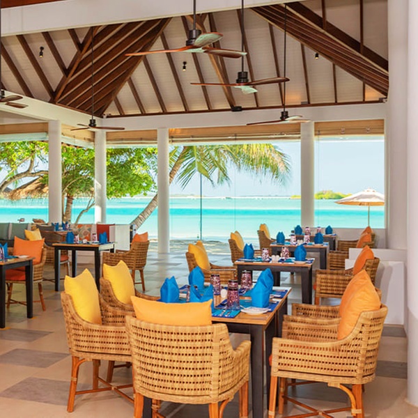In riva al mare, con una vista mozzafiato sulle acque turchesi delle Maldive e sulle spiagge di sabbia bianca, potrete gustare specialità internazionali e piatti tradizionali locali durante un pranzo rilassante o una cena romantica sotto un mare di stelle.