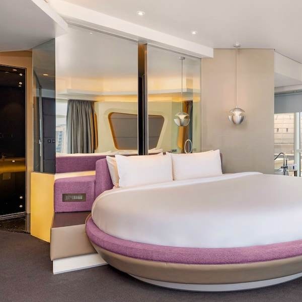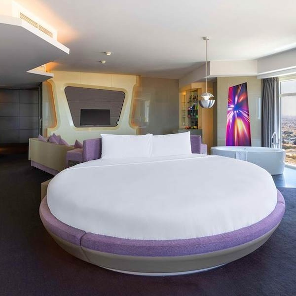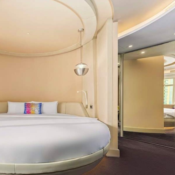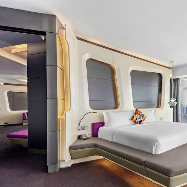 Le camere Deluxe con letto king-size vi immergono in un ambiente fantascientifico, in totale armonia con l'esuberanza architettonica della città.