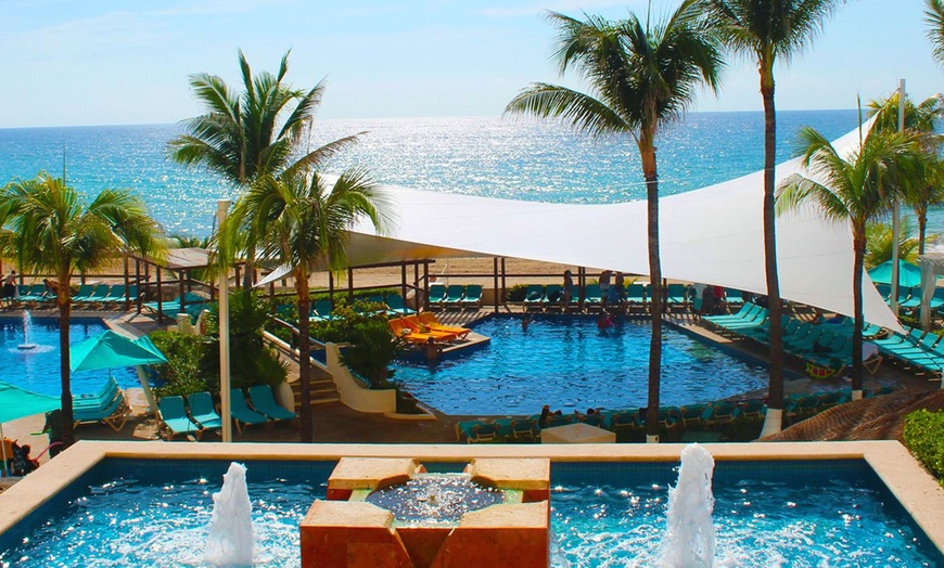 La grande piscina paradisiaca del resort è circondata da ombrelloni e sedie a sdraio per permetterti di approfittare del sole di Cancún. Il mar dei Caraibi, a pochi passi di distanza, ti offre un'altra meravigliosa opzione per farti una nuotata.