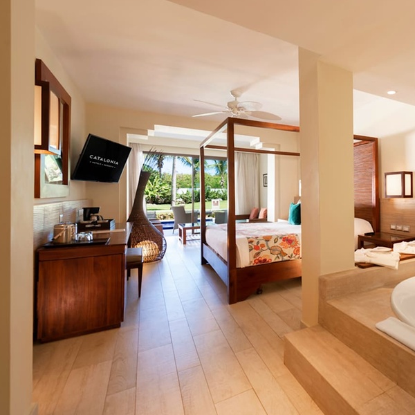 Una pausa rivitalizzante da concedersi con un soggiorno a Punta Cana, in un ambiente da cartolina con sabbia fine, acque turchesi e palme. Situato a 20 minuti dall'aeroporto internazionale, l'hotel Catalonia Royal Bavaro 5* dispone di diverse piscine esterne, un centro benessere, una spiaggia privata, diversi ristoranti e bar. Riservato alla sola clientela adulta e in formula all-inclusive, questo hotel è il luogo ideale per rilassarsi, divertirsi e stare insieme in coppia o con gli amici. Le suite sono moderne, confortevoli e dotate di balcone. Molte attività sono disponibili in loco: golf, fitness, sport acquatici...