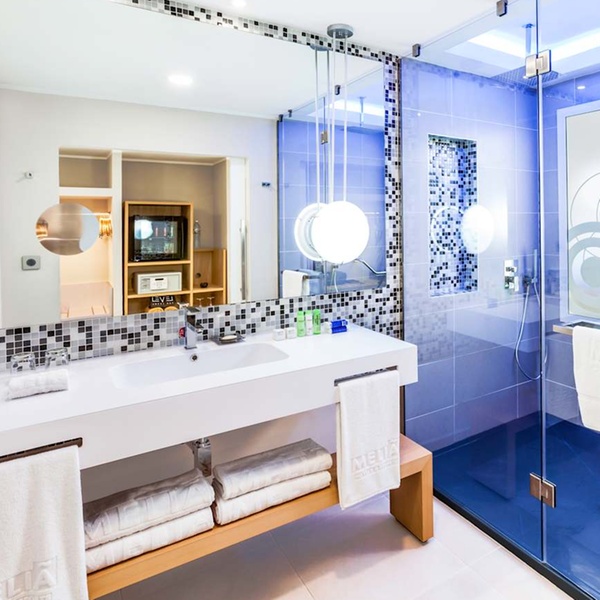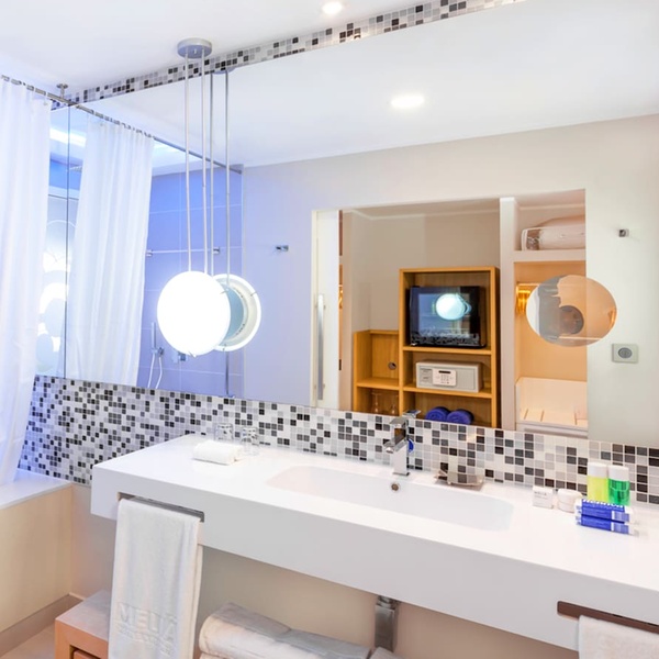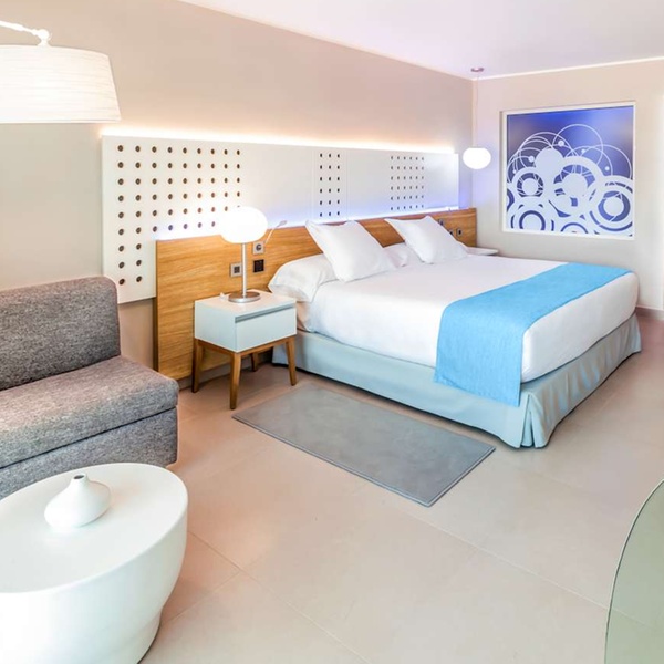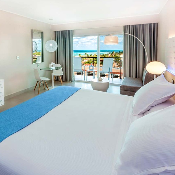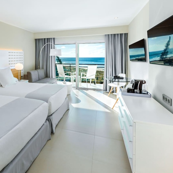 Spaziosa e ordinata, questa camera dall'arredamento moderno offre una vista mare mozzafiato. Comoda a piacere, ha un letto King Size o due letti singoli, un divano letto e un bagno con vasca. È ideale per un soggiorno in famiglia con un bambino.