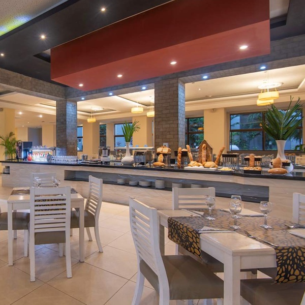 La spaziosa sala da pranzo è il luogo d’incontro per gli appetiti più esigenti. Gli amanti della cucina locale ispirata ai sapori internazionali possono comporre un piatto pieno di colori e profumi dal generoso buffet.