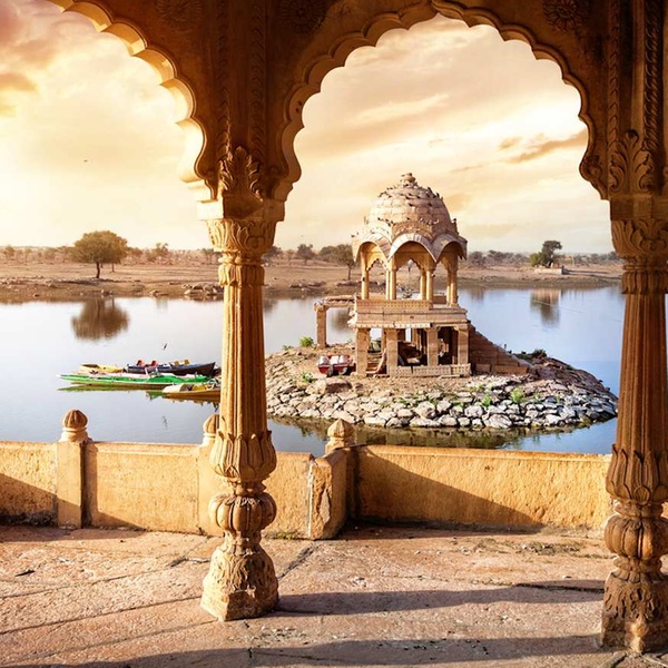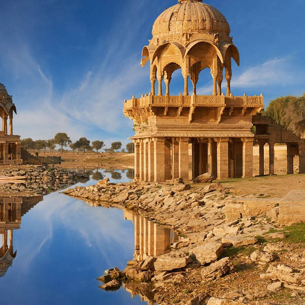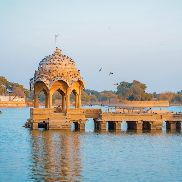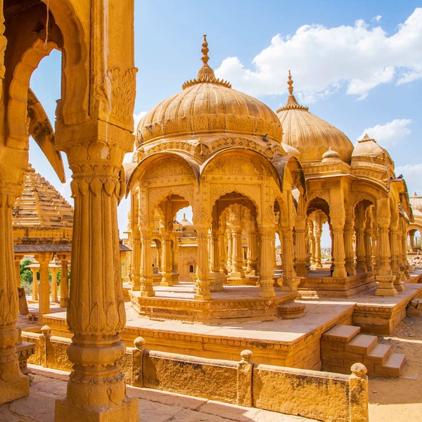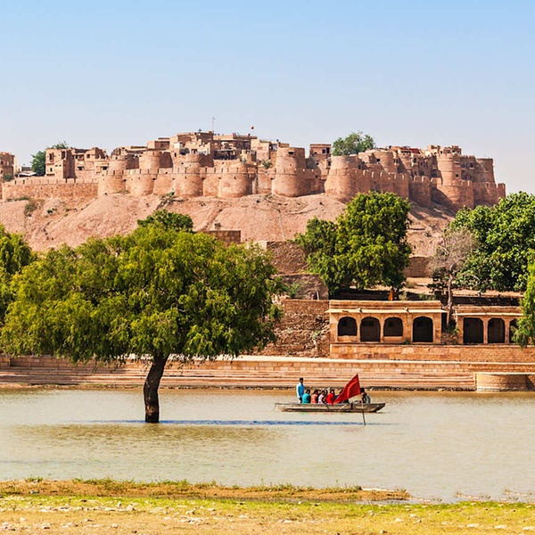 Jaisalmer, soprannominata la città d'oro per il colore dei suoi edifici al tramonto, è una città-fortezza situata nel deserto arido del Thar, di una bellezza unica. La sua posizione strategica, sulla rotta che collega l'India all'Asia centrale, è stata una fonte di grande ricchezza per la città che si è rapidamente riempita di magnifiche dimore in legno finemente scolpito e in arenaria gialla dorata, oltre a splendidi templi.