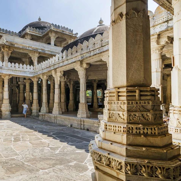Sosta per visitare i templi giainisti di Ranakpur, capolavoro di intarsio in marmo bianco. Il magnifico tempio giainista scolpito nel marmo bianco è uno dei cinque luoghi più sacri per la religione giainista. Il tempio è un esempio straordinario di genio architettonico che vuole stupire e incantare. Qui, si possono incontrare molti pellegrini che ricevono le benedizioni dei monaci del tempio.